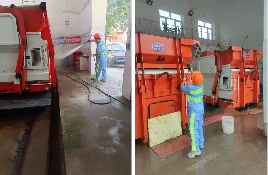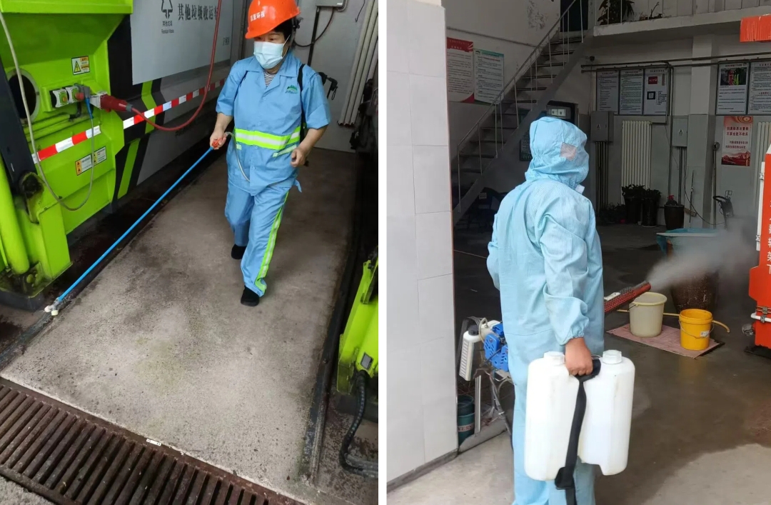 衛(wèi)生安全是城市環(huán)境保障的底線,消殺工作更是重中之重。潔亞環(huán)保嚴格遵循 "全覆蓋、無死角" 原則,組織專業(yè)消殺人員每日三次對壓縮機、車輛停放區(qū)等重點區(qū)域“地毯式”噴灑消毒;垃圾桶、工具存放區(qū)逐一擦拭,從源頭阻斷蚊蠅滋生。峰會期間,中轉(zhuǎn)站消殺面積達2萬余平方米,實現(xiàn)衛(wèi)生安全“零隱患”。