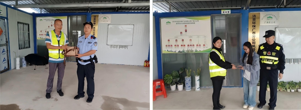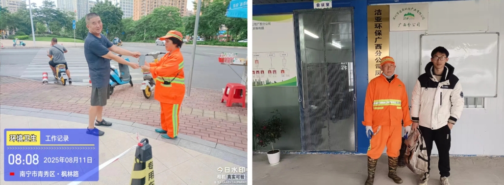 一面錦旗映初心,兩行金句傳美德。9月11日,南寧市民那女士手持題有“拾金不昧好榜樣,弘揚(yáng)社會(huì)正能量”的錦旗,鄭重送至潔亞環(huán)保廣西青秀鳳嶺北項(xiàng)目部,以此致謝團(tuán)隊(duì)幫她尋回遺失物品。