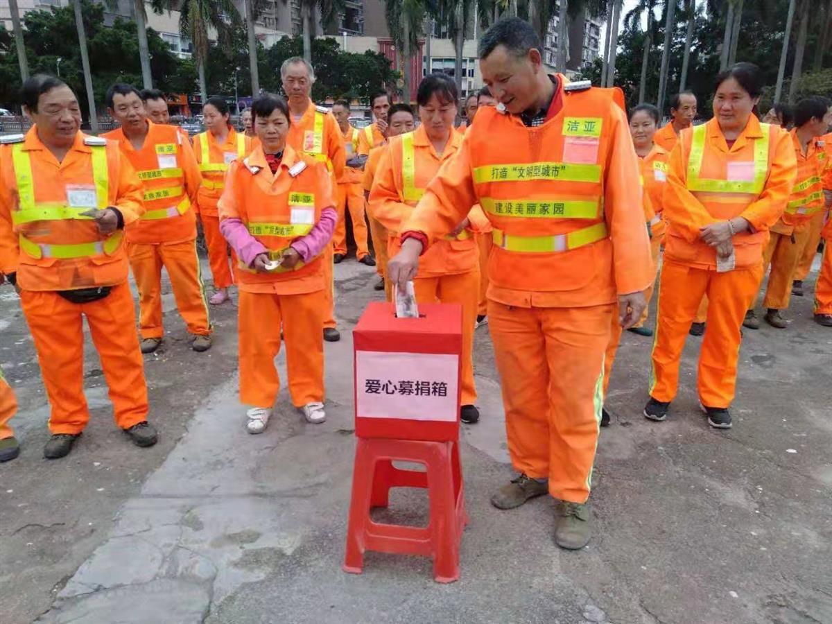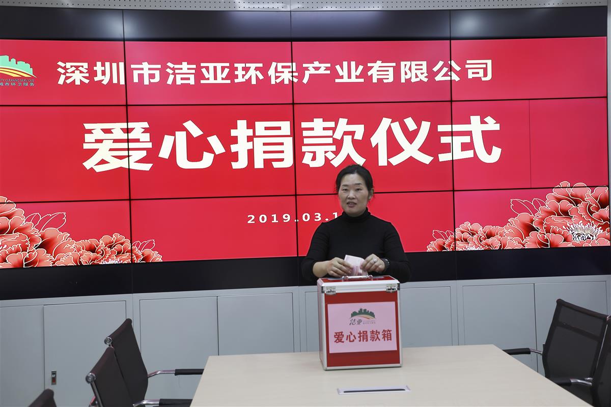 自倡議書發(fā)出后,在幾天時間了,潔亞總部和各項(xiàng)目部均自發(fā)地組織了愛心捐款活動,潔亞人自發(fā)地來到捐款箱前,5元、10元、20元……500元,投下了無私的愛。雖然她們生活并不寬裕,但她們的愛心足于感動天地,她們在工作崗位的馬路邊,在各項(xiàng)目部辦公室,在簡陋的自制捐款箱面前,她們像圣潔的天使一樣,把愛灑滿人間……