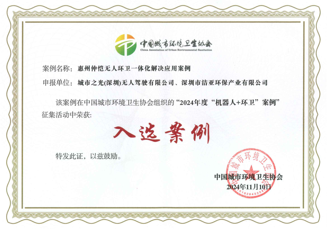 會上,潔亞環(huán)保憑借卓越成就,榮獲“機(jī)器人+環(huán)衛(wèi)”及“關(guān)愛環(huán)衛(wèi)工人”兩大應(yīng)用案例獎項(xiàng),彰顯了其在智慧環(huán)衛(wèi)技術(shù)創(chuàng)新與人文關(guān)懷領(lǐng)域的領(lǐng)先地位。
